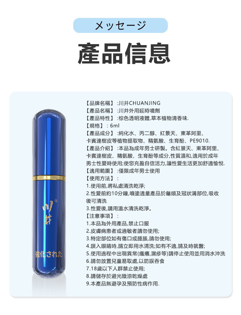 (我就是這位劉先生的妻子,以前我丈夫和我每個月行房兩次,真的很可悲,因為我丈夫只能和我持續三分鐘左右,我一直都在尋找可以治好我丈夫的藥物。我丈夫也很自責,也曾嘗試過很多藥物,威而鋼、日本藤素之類的。起初這些藥物效果不錯,我很高興,但是隨著時間的推移,他越服越多,而效果越來越差,再加上它影響了這些西藥對人體傷害真的很大,依賴性也很強。所以我就不在讓丈夫服用了!也因為他的陽痿早洩越來越嚴重甚至有點舉不起來了!)直到有一天,我在網路上看到(井川延時噴霧)介紹說是百分百的純中藥提取物,不當沒有任何副作用,藥物功效上更是保證100%治療陽痿早洩,還可以讓陰莖增大7-15公分增粗3-8公分,房事時間40分鐘以上,輕微挑逗即可勃起,於是我想著至少不用服用不會影響內臟、不具有依賴性。我便立即決定讓丈夫試一試!)(下單後很快就到貨了,我迫不及待地想看到效果——讓他當天晚上就開始使用。在我第二天下班回家之後我正在洗衣服,他回來之後,就把臉埋在我的脖子上,手腳開始不安分的脫衣服,我們當場在洗衣機旁邊做了一次。這次我感受到以往日不同的他:陰莖強硬滾燙,進入陰道後緊緊被撐滿,每一下都頂到深處,讓我不斷的呻吟傳出男女交合之歡.......整整進行了將近15分鐘,我以為這就結束了...畢竟我們從來沒有過10多分鐘的性愛,可是沒想到後面又轉到了臥室,又開始了,陰莖不僅沒有疲軟的狀態反而更強硬翹起,這一次一下又一下用力的快速撞擊著,讓我經歷了人生第一次的高潮,淫水控制不住的噴出...那夜我癱軟在床上,第二日都還在回味著...)